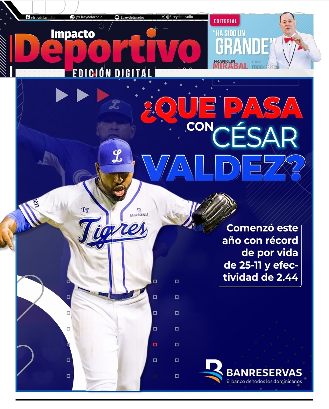 En este portal jamás atacaríamos a un lanzador glorioso, que tanta alegría le ha dado a los Tigres del Licey.