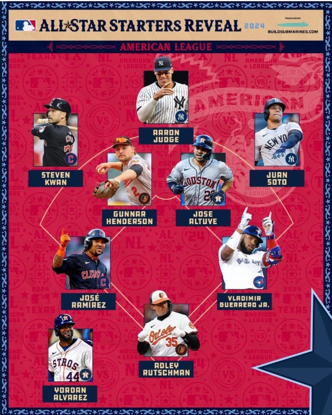En la Liga Americana el tercera base José Ramírez, el primera base Vladimir Guerrero Jr., y el jardinero derecho Juan Soto serán titulares; en tanto que en la Liga Nacional el segunda base Ketel Marte y el jardinero derecho Fernando Tatis Jr., figuran entre los titulares.