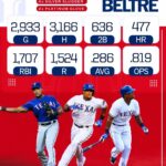 “Tremendo jugador que yo ni sabía cómo pensar en los números que puso él en Grandes Ligas”, resaltó Beltré. “Y ahora, estar en el mismo renglón, la misma lista que él, es algo para mí increíble”.