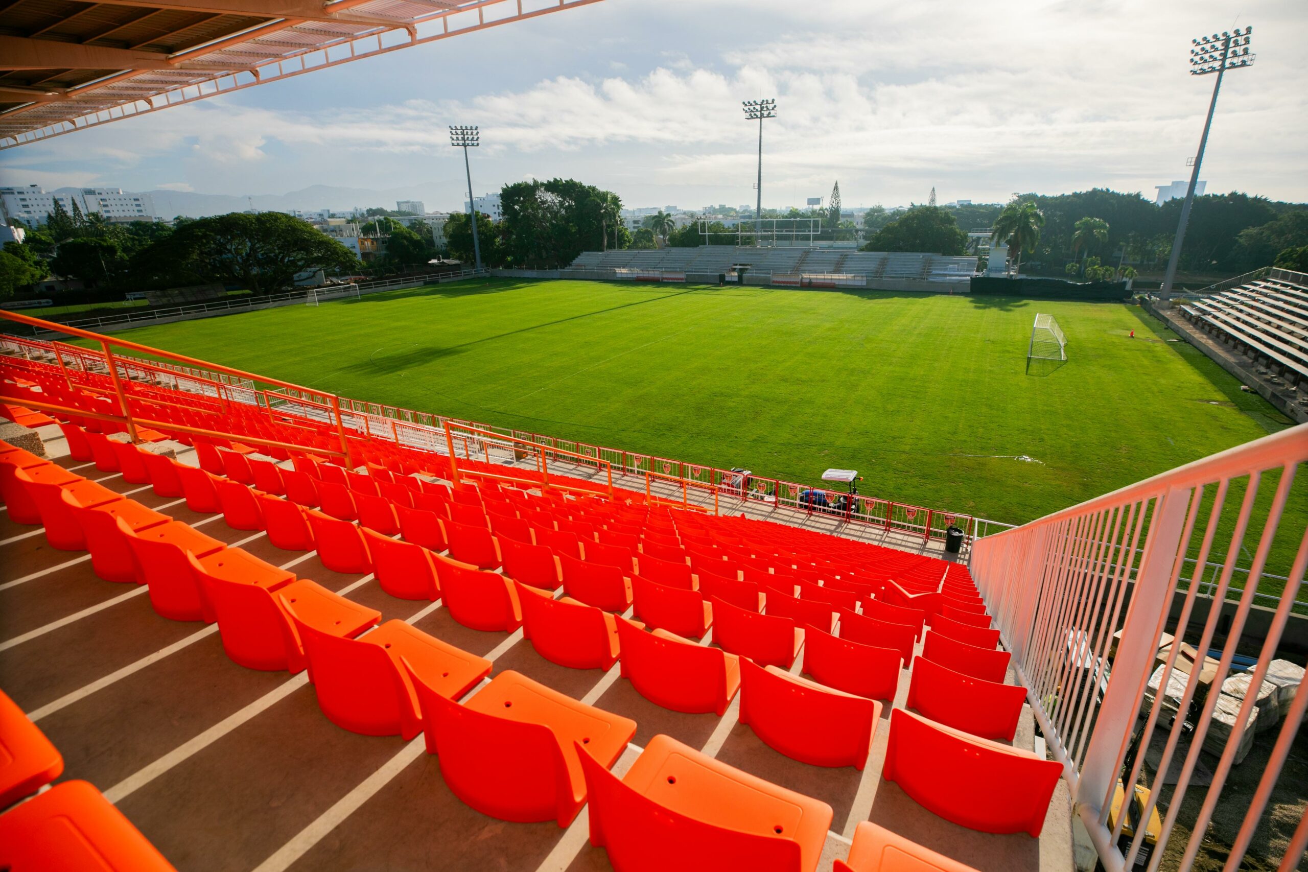 El Estadio Cibao FC, esta siendo remodelado por completo y las intervenciones incluyen un campo de juego ampliado, que pasó de un área de juego de 100 por 64 metros a 105 por 68 metros dentro de las líneas de juego.
