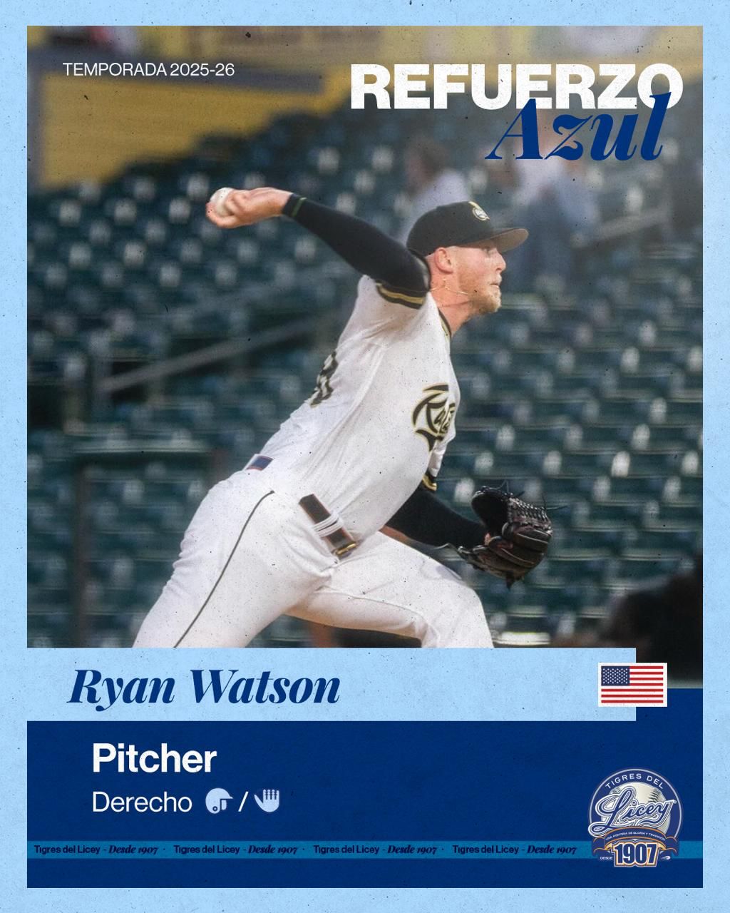 Los Tigres del Licey contrataron los servicios del derecho Ryan Watson como refuerzo, para la venidera temporada 2025-26 de la Liga de Béisbol Profesional de la República Dominicana.