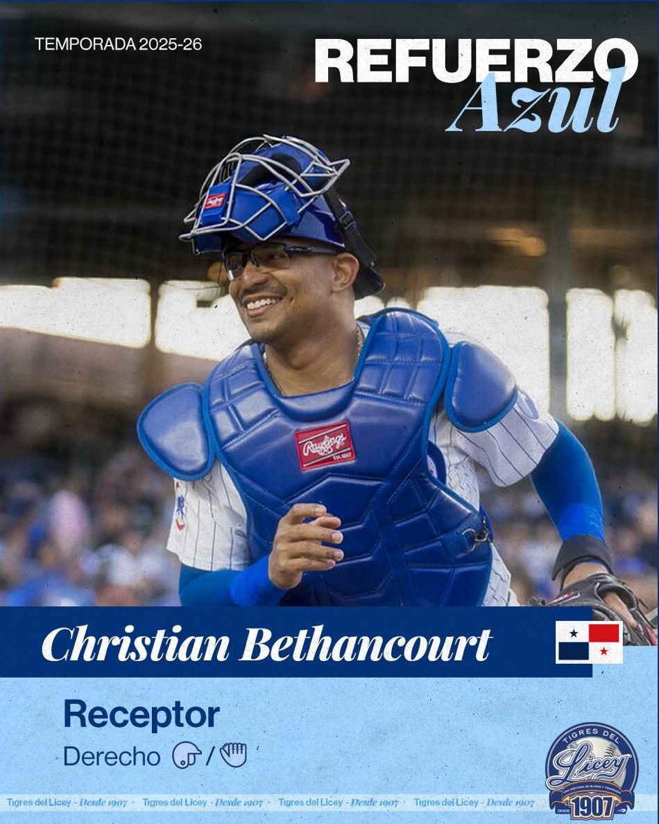 Los Tigres del Licey contrataron los servicios de Cristian Bethancourt, como refuerzo para la venidera temporada 2025-26 de la Liga de Béisbol Profesional de la República Dominicana.