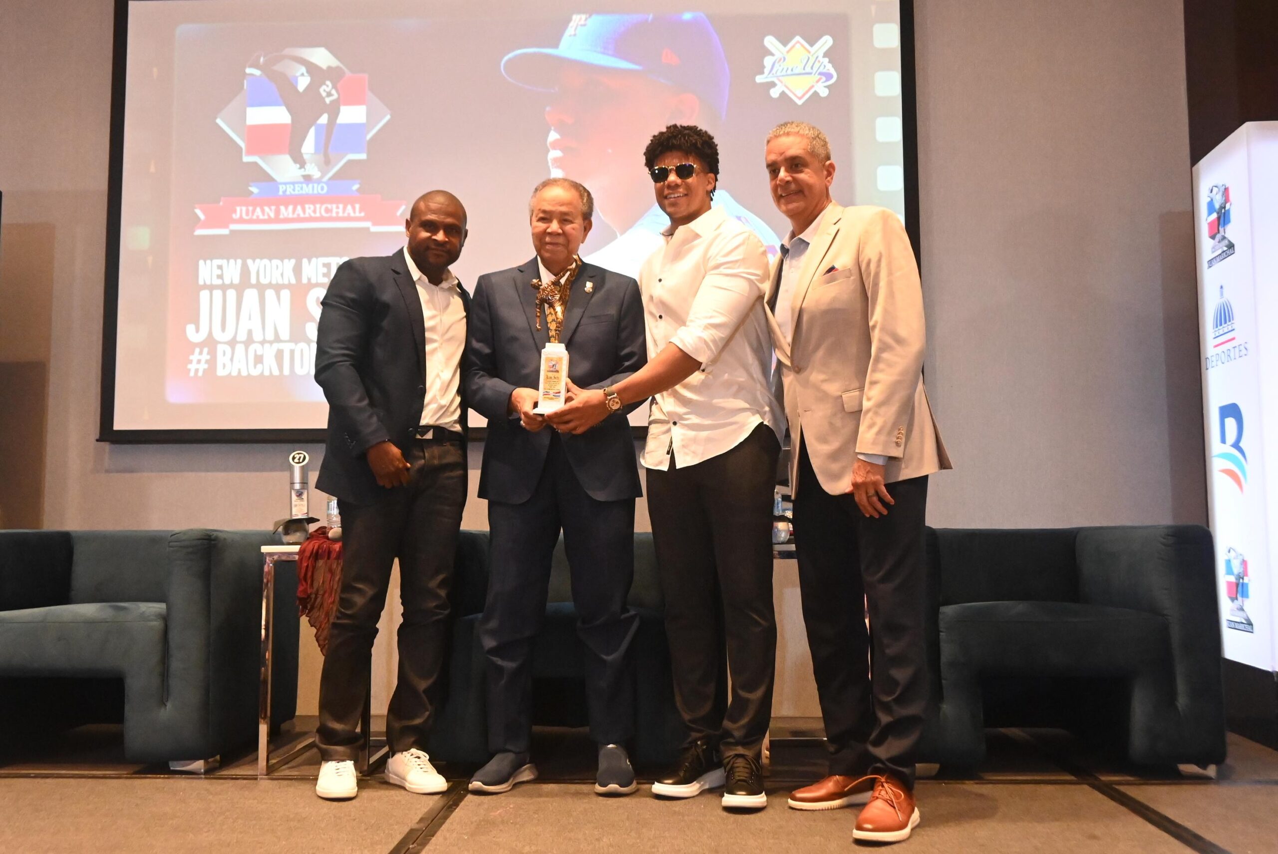 El primer dominicano miembro del Salón de la Fama de Cooperstown del Béisbol de las Grandes Ligas, Don Juan Marichal, entregó este domingo al estelar de los Mets de Nueva York, Juan Soto, el galardón que lo acredita como el mejor jugador dominicano en la temporada 2025 de MLB.