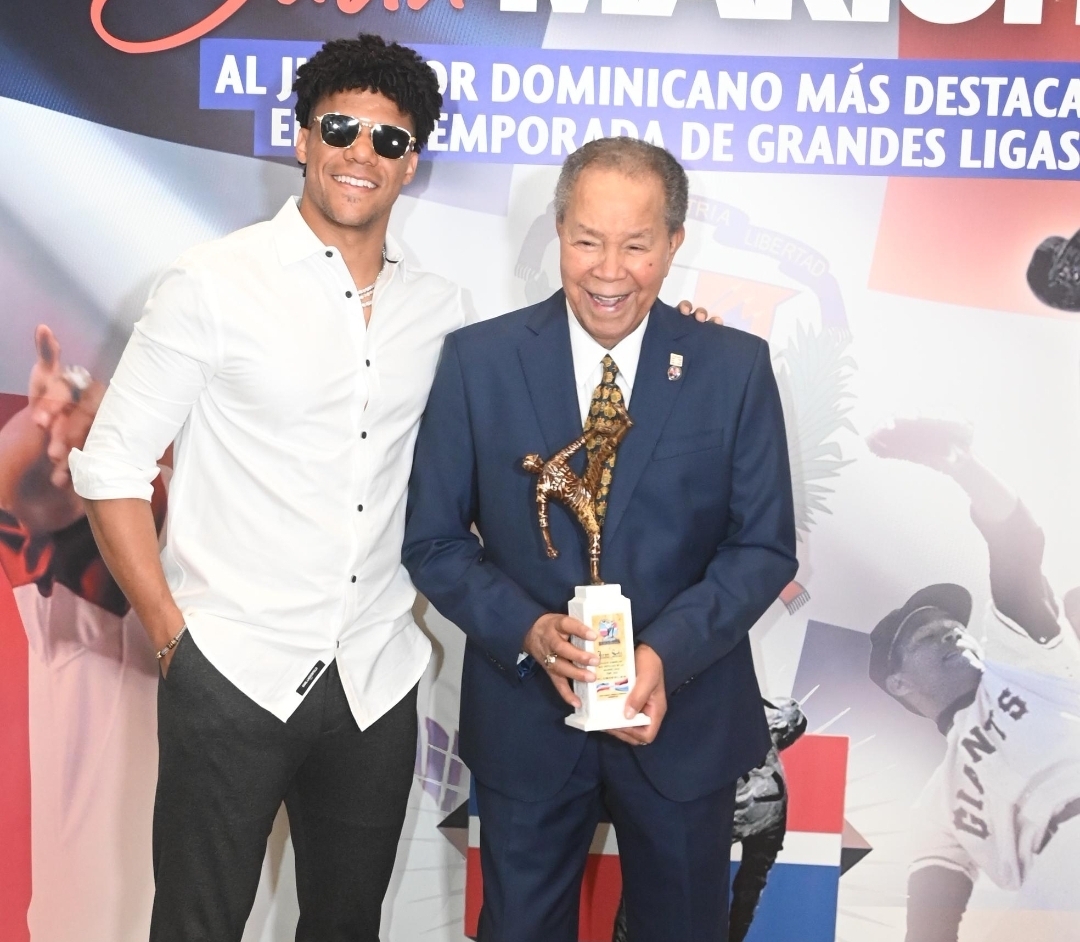 El primer dominicano miembro del Salón de la Fama de Cooperstown del Béisbol de las Grandes Ligas, Don Juan Marichal, entregó este domingo al estelar de los Mets de Nueva York, Juan Soto, el galardón que lo acredita como el mejor jugador dominicano en la temporada 2025 de MLB.