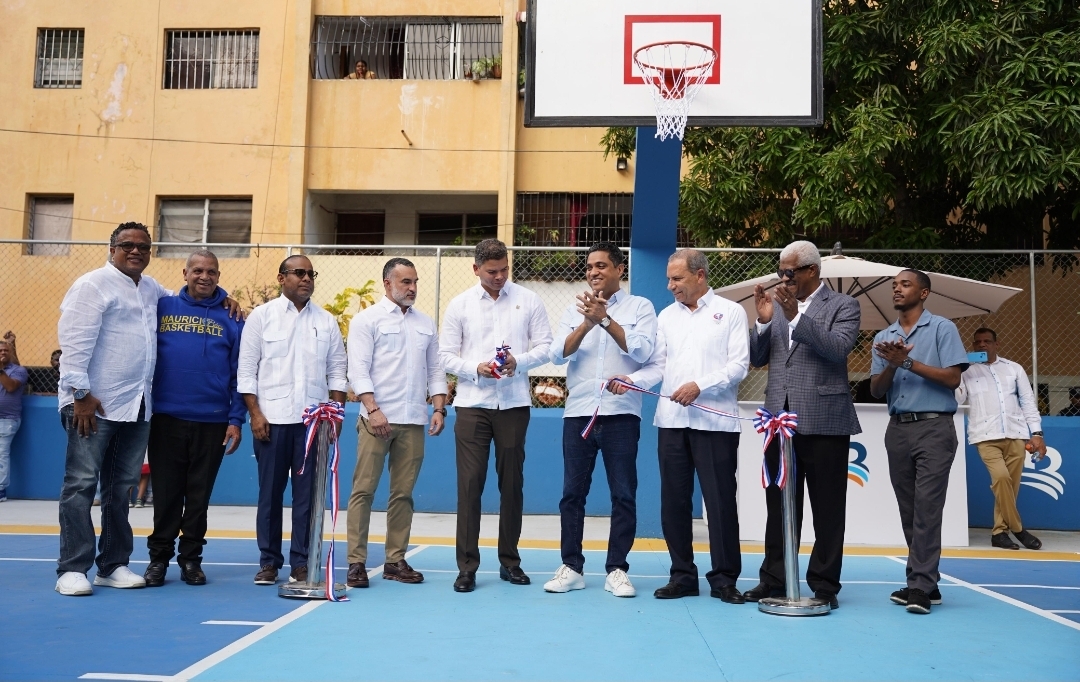 La remodelación de la cancha mixta de Villa Consuelo, donde se practica baloncesto y voleibol, es una de las obras que Banreservas realiza en toda la geografía nacional en beneficio del deporte y la juventud dominicana.