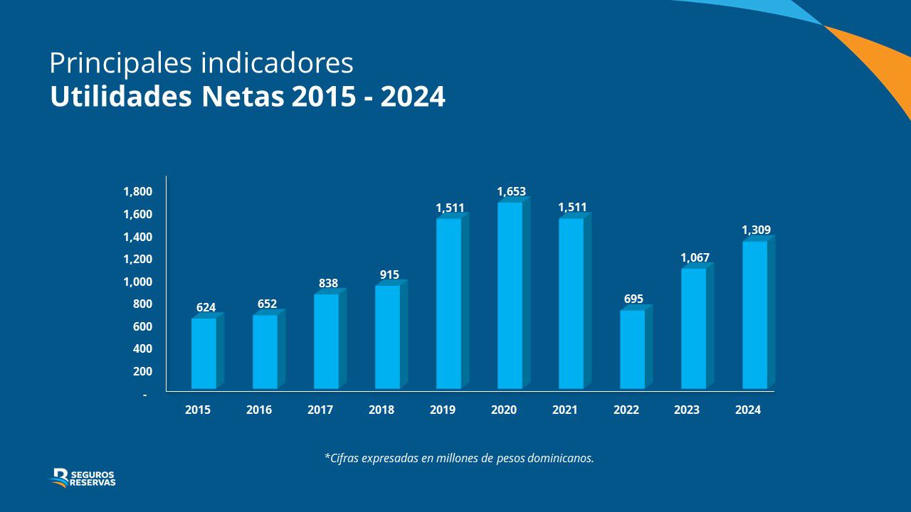 Seguros Reservas es una empresa que cuenta con 23 años de gestión y funcionamiento en el mercado asegurador dominicano. Al cierre de 2025, alcanzó utilidades por más de RD$2,200 millones, reflejando así las mayores ganancias de toda su trayectoria, superando con creces el 2020, que había sido el año de mayor resultado hasta el momento, con RD$1,653 millones.