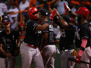 Los capitaleños sumaron una más en el cuarto, pero luego de dos outs en el quinto, ante Anderson Severino, Michael De la Cruz conectó indiscutible al bosque izquierdo, se estafó la intermedia y anotó con doble al central por parte de Jonathan Guzmán, quien alcanzó la goma con la octava de los escogidistas tras imparable de Lake frente a Jhan Maríñez.